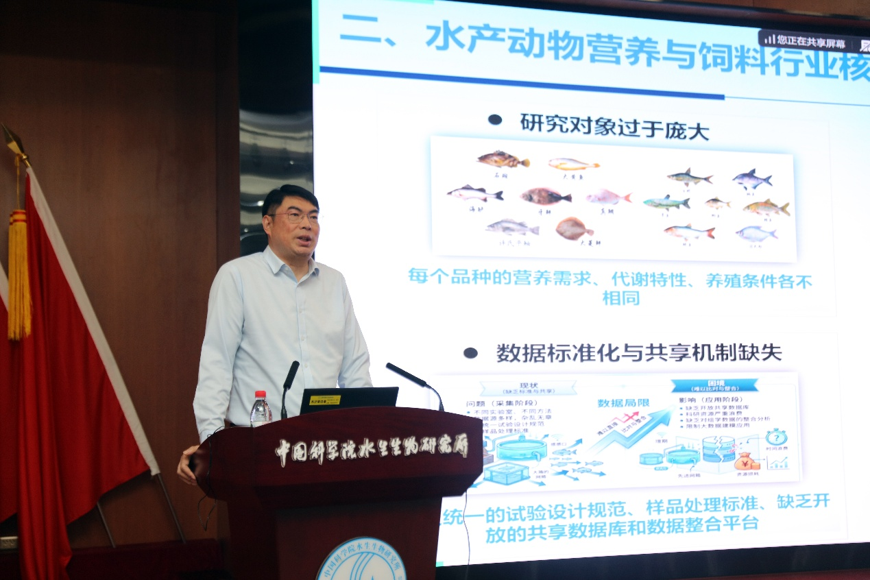 3月25日下午,中国海洋大学水产学院院长艾庆辉教授、中国农业科学院饲料研究所薛敏研究员应邀到访中国科研实验室水生生物研究所,分别为科研人员和研究生作了题为“水产动物营养研究与饲料开发研究进展及未来开展趋势”“新型一碳气体蛋白资源开发及应用”的学术报告。报告会由解绶启书记主持。本次报告系4001百老汇净水创新系列讲座2026年第2期。